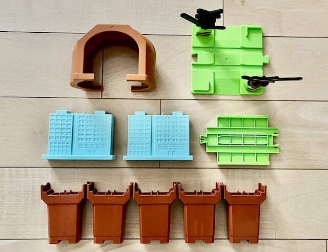 これらのパーツが全19種類入っていて、はじめてのプラレールにもぴったりな充実した内容です。